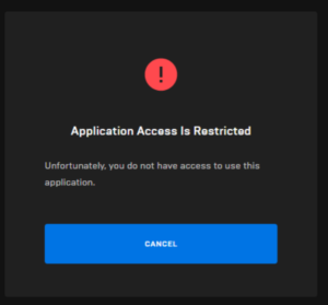 デベロッパーポータルのガイドから引用したため英語表記ですが、組織に登録されていないユーザーアカウントを使用した場合は、「アクセスが制限されています」のメッセージとキャンセルボタンのみの画面がでてくるため、ユーザー認証は行われません。