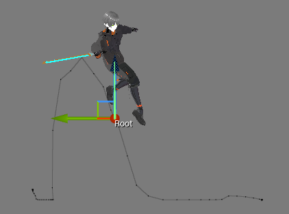 ※右図については、中央の図の終盤のフレーム(中央の図の左端が該当)で、Rootの位置が地面より上になっているので、Y軸方向を調整したものになります。