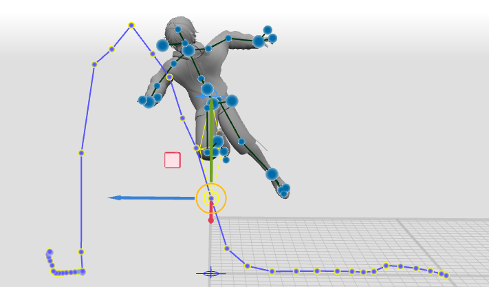 その後、AutoPosing等で上方向(CascadeurではY軸方向)に移動するように編集します。元のアニメーションが上方向に移動する、かつ、移動量を変える必要がなければ何もしなくてOKです。