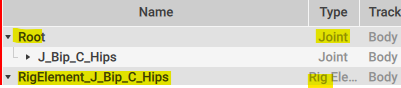 ※RigElement_J_Bip_C_HipsはQuickRiggingToolで「J_Bip_C_Hips」を指定した時に作成されます。ボーン名を変更した場合は、変更した名前になっているかと思います。