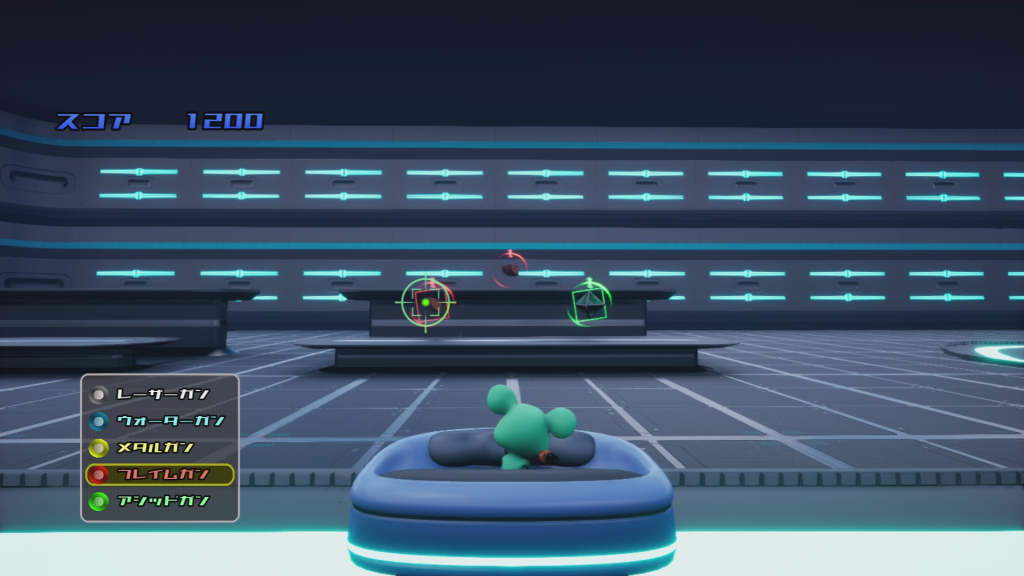 2人または1人プレイのライド型のシューティングゲームです。