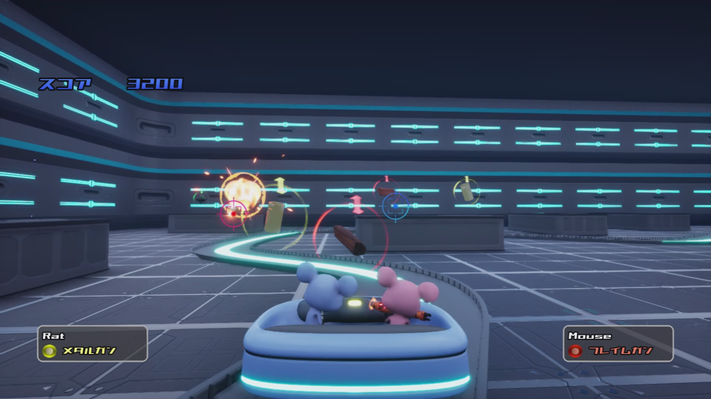 遊園地のライド型アトラクションをテーマに、マルチプレイの協力プレイを主軸に構想しました。
